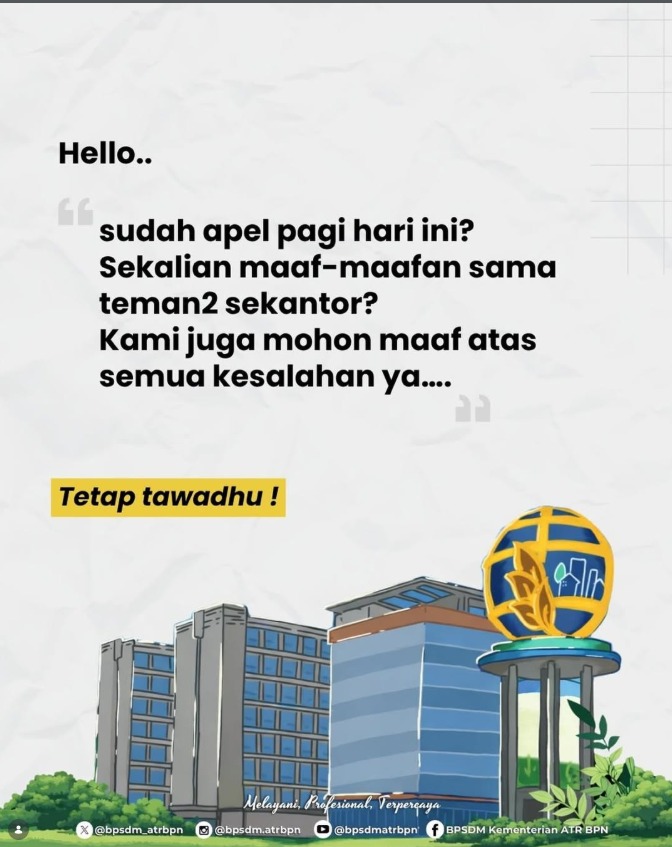 Serdang Bedagai | Harian.co.id,- Apel pagi sekaligus bermaaf maafan sesama rekan sekantor sangat Indak terasa. Suasana itu menambah kekerabatan dan suka cita. Segenak pegawai kantor Badan Pertanahan Nasional Kabupaten Serdang Bedagai