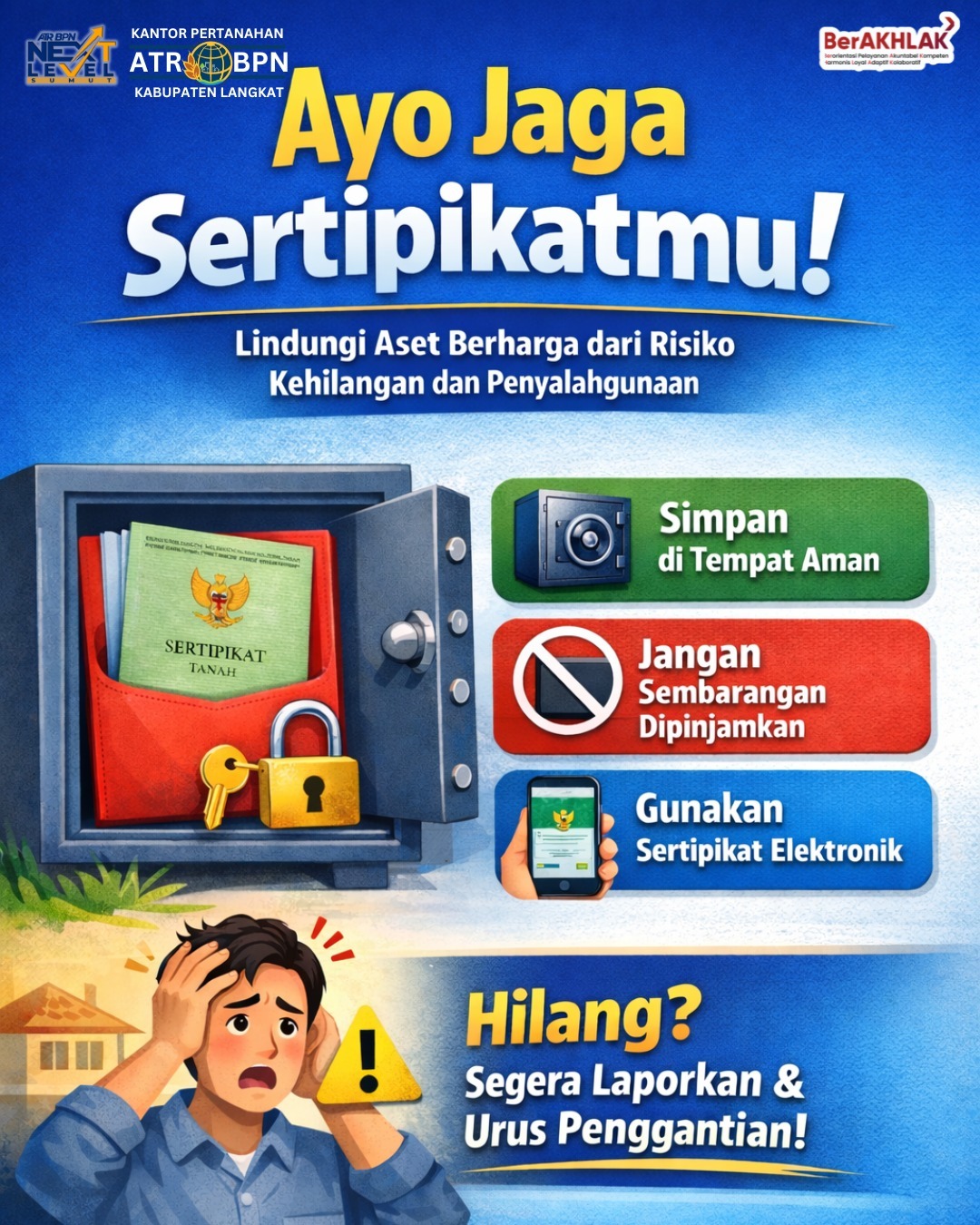 Ayo Jaga Sertipikat Mu, Lindungi Aset Berharga Dari Risiko Kehilangan Dan Penyalahgunaan.(foto/ist)