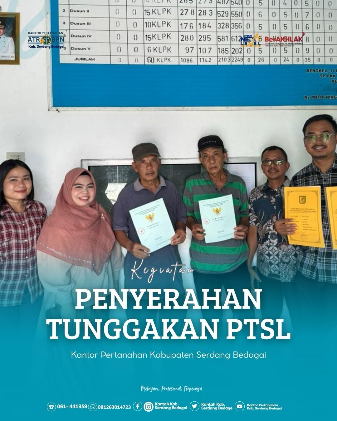 Serdang Bedagai | Harian.co.id,- Kantor Pertanahan Kabupaten Serdang Bedagai melaksanakan kegiatan penyerahan tunggakan PTSL di beberapa desa(10/04/2026) sebagai bentuk komitmen dalam menyelesaikan hak atas tanah masyarakat.