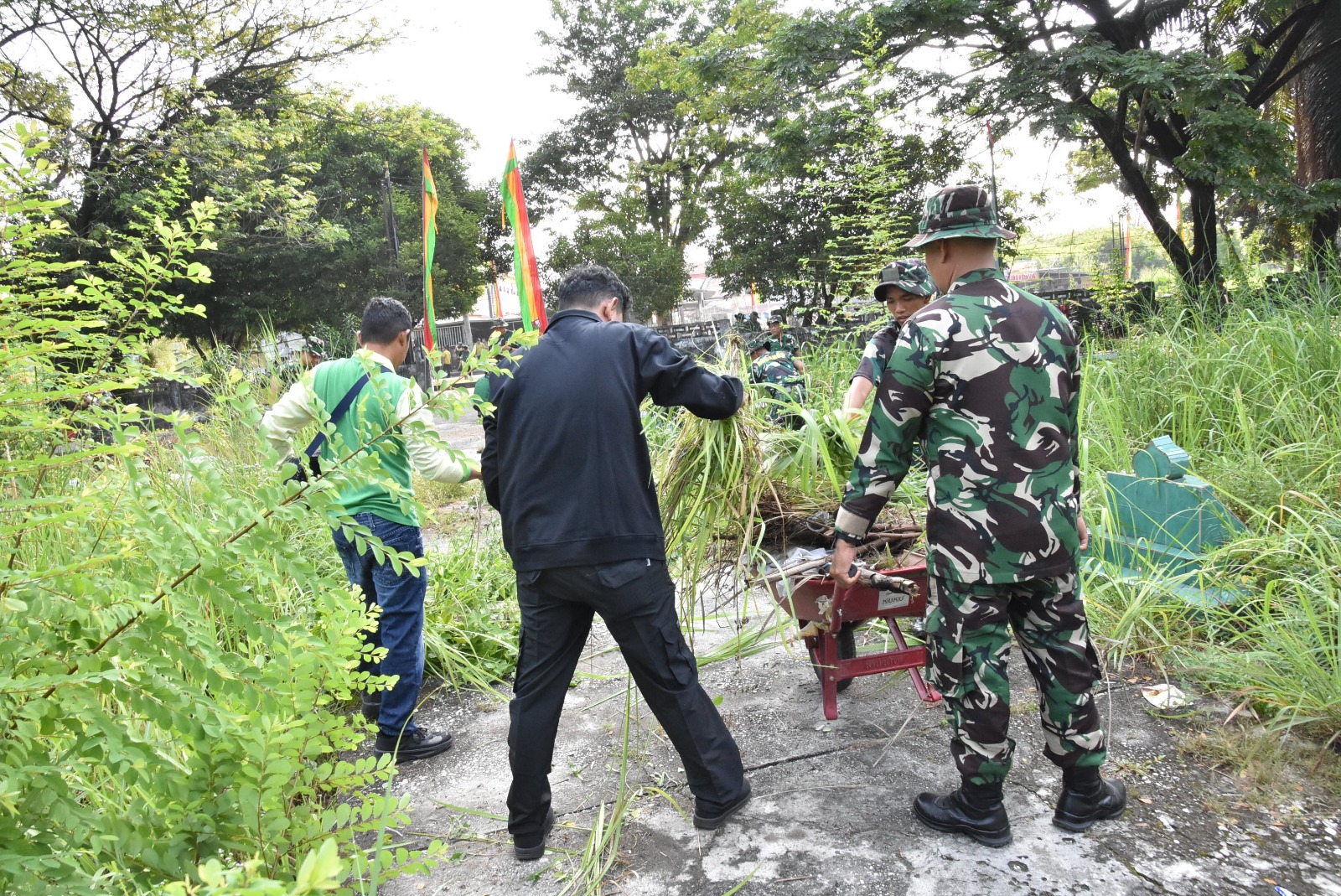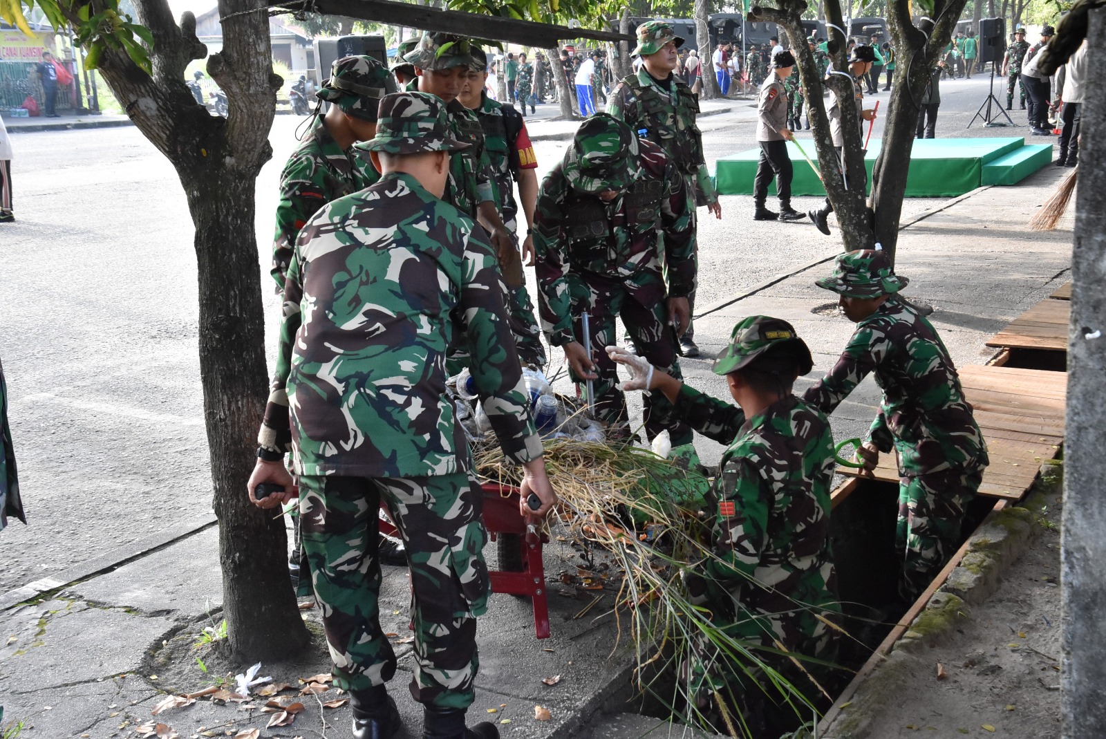 Sekitar 300 peserta terlibat dalam kegiatan tersebut yang terdiri dari unsur TNI, Polri, Pemerintah Daerah, serta pelajar. Para peserta bergotong royong membersihkan fasilitas umum, lingkungan sekitar, saluran air, serta sejumlah titik yang dinilai rawan penumpukan sampah.