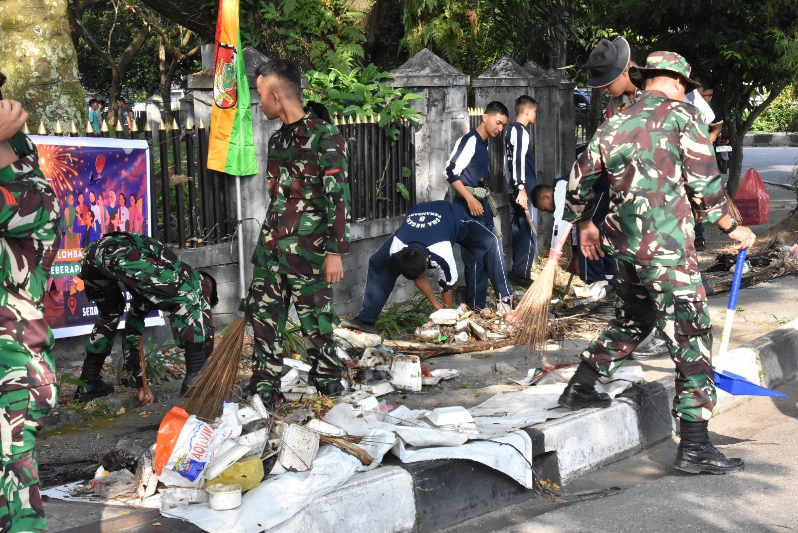 Sebagai implementasi instruksi tersebut, aksi peduli kebersihan digelar pada Rabu (5/2/2026) di Jalan Pattimura, Bundaran Keris,. Kegiatan ini dihadiri oleh Kepala Staf Korem (Kasrem) 031/WB Kolonel Inf Tri Aji Sartono yang mewakili Danrem 031/WB, didampingi Kasiter Kasrem 031/WB Kolonel Inf N. Wahyu Nugroho.
