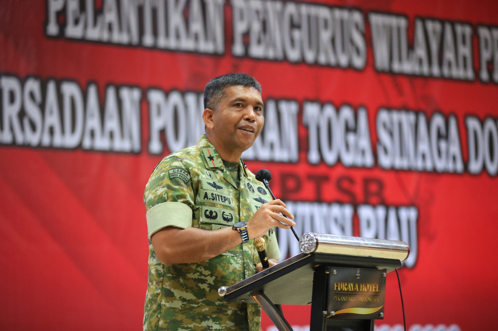 PEKANBARU | Harian.co.id,-Komandan Korem (Danrem) 031/Wira Bima, Brigjen TNI Dr. Agustatius Sitepu, S.Sos., M.Si., M.Han., menghadiri pelantikan Pengurus Wilayah Persadaan Pomparan Toga Sinaga Dohot Boru (PPTSB) Provinsi Riau masa bhakti 2026–2030, yang digelar di Pekanbaru, Minggu (8/2/2026).