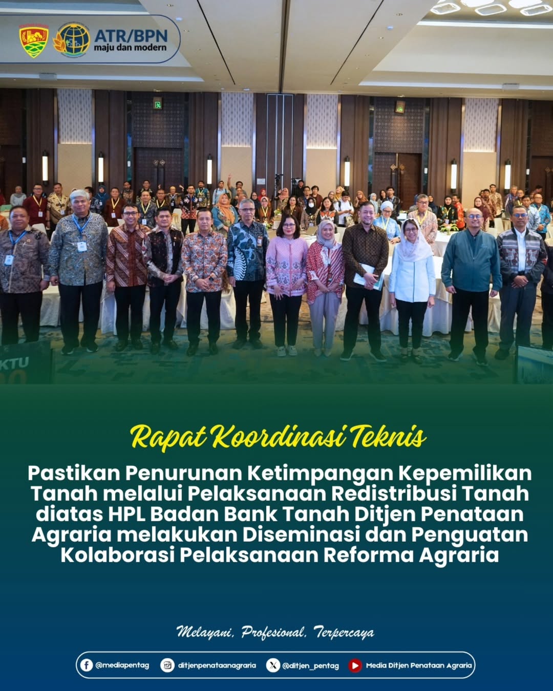 Jawa Barat | Harian.co.id,- Direktorat Jenderal Penataan Agraria melaksanakan Rapat Kerja Teknis (Rakernis) Tahun 2026 yang diselenggarakan di Novotel Bogor Golf Resort and Convention Center, Jawa Barat (11-13/03/2026) dengan mengusung tema “Diseminasi dan Penguatan Kolaborasi Pelaksanaan Reforma Agraria”. Rakernis ini dihadiri oleh Staf Ahli Bidang Partisipasi Masyarakat dan Pemerintah Daerah, Staf Ahli Bidang Teknologi Informasi dan Staf Khusus Bidang Reforma Agraria lalu turut serta mengundang narasumber yaitu Plt. Deputi Bidang Perekonomian dan Pangan KSP, Kementerian Kehutanan, Plt. Badan Bank Tanah, Kemenko Bidang Infrastruktur dan Pembangunan Kewilayahan, Kemenko Bidang Pemberdayaan Masyarakat, Kementerian Dalam Negeri, Kemenko Bidang Pangan, serta Bappenas.