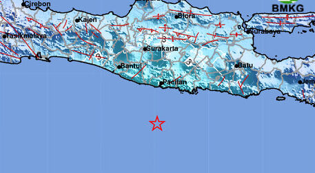 Episentrum gempa berada di titik koordinat 8,88 derajat lintang selatan dan 111,04 derajat bujur timur. Lokasinya berjarak sekitar 78 kilometer barat daya Pacitan, Jatim, dengan kedalaman 20 kilometer.