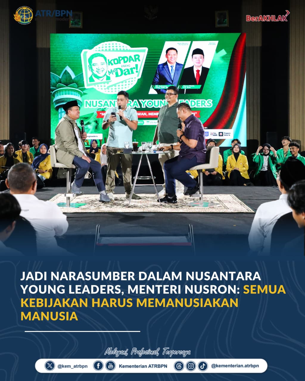 Jadi Narasumber dalam Nusantara Young Leaders, Menteri Nusron: Semua Kebijakan Harus Memanusiakan Manusia.(foto/ist)