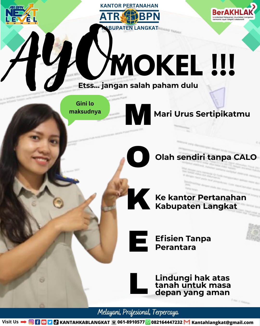 Melalui kampanye “MOKEL”, diharapkan masyarakat semakin sadar akan pentingnya mengurus sertipikat tanah secara langsung dan mandiri di Kantor Pertanahan Kabupaten Langkat. (Rel/LKT)
