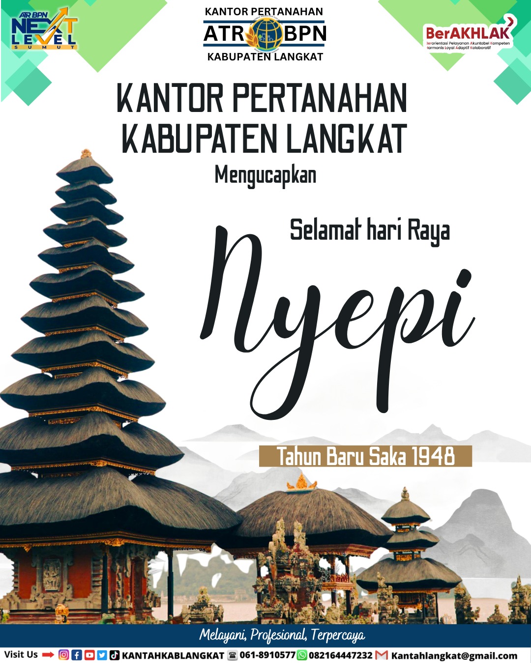 Stabat | Harian.co.id,– Kantor Pertanahan Kabupaten Langkat menyampaikan ucapan Selamat Hari Raya Nyepi Tahun Baru Saka 1948 kepada seluruh umat Hindu yang merayakan.