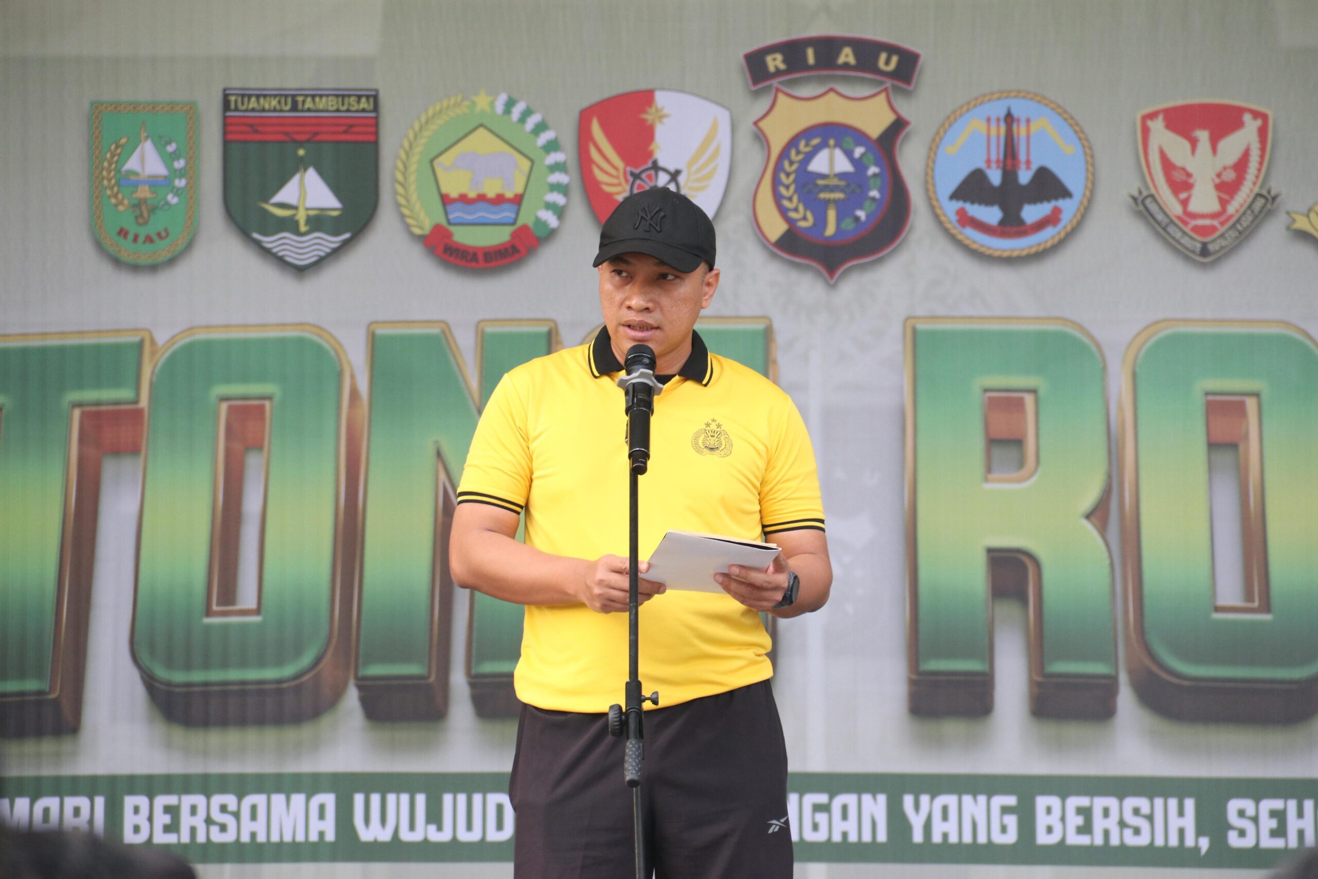 Apel persiapan dipimpin oleh Kapolresta Pekanbaru Kombes Pol. Muharman Arta, S.I.K., M.H. Dalam arahannya, Kapolresta Pekanbaru menegaskan bahwa kegiatan gotong royong ini merupakan bentuk kepedulian bersama terhadap kebersihan lingkungan.