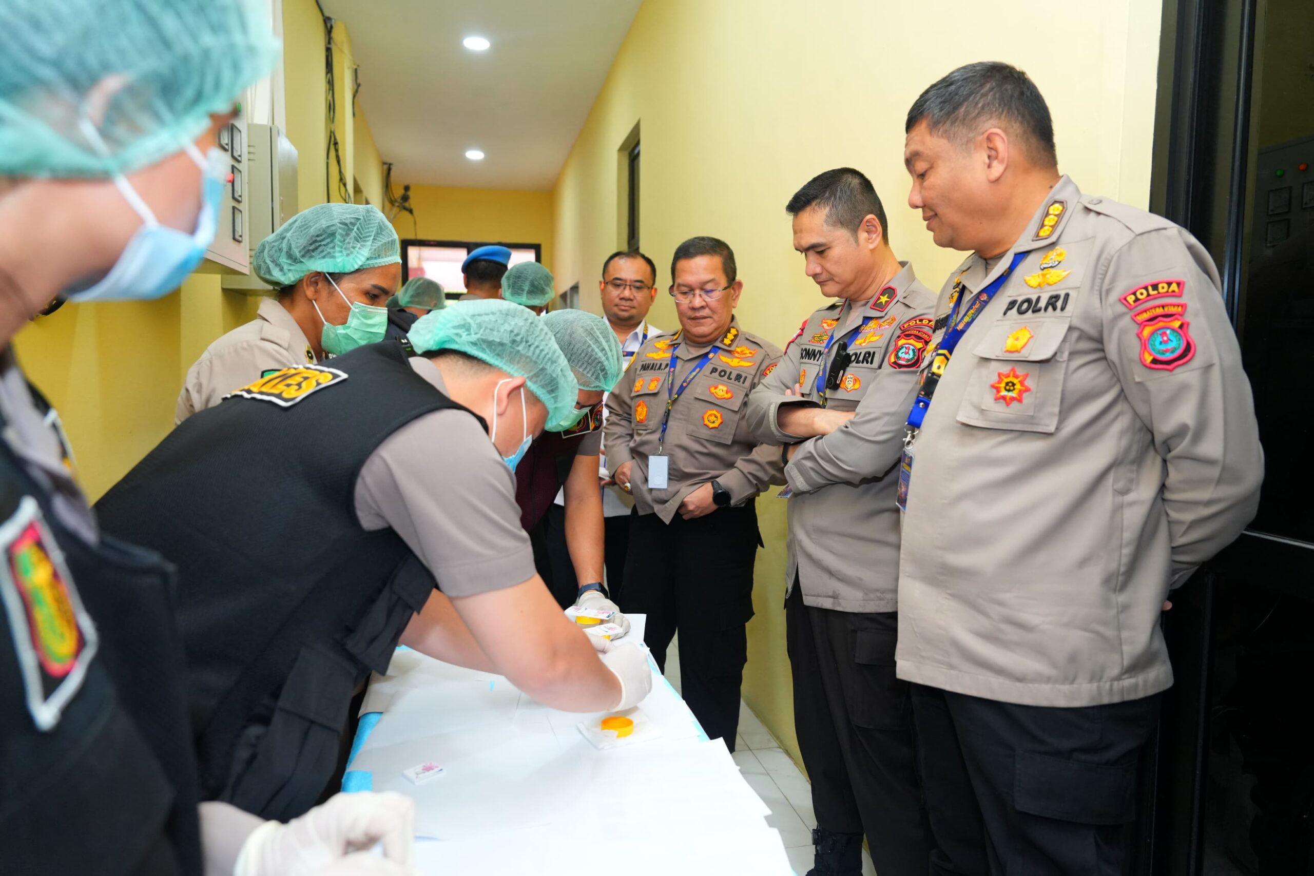 Medan | Harian.co.id— Kepala Kepolisian Daerah Sumatera Utara Irjen Pol Whisnu Hermawan Februanto memimpin langsung pelaksanaan tes urine terhadap jajaran pejabat utama dan kapolres se-Sumatera Utara dalam rangkaian Rapat Pimpinan (Rapim) Tahun 2026 di Aula Tribrata Mapolda Sumut, Rabu (25/2/2026) sebagai tindak lanjut instruksi Kapolri guna memastikan internal Polri bersih dari penyalahgunaan narkoba.