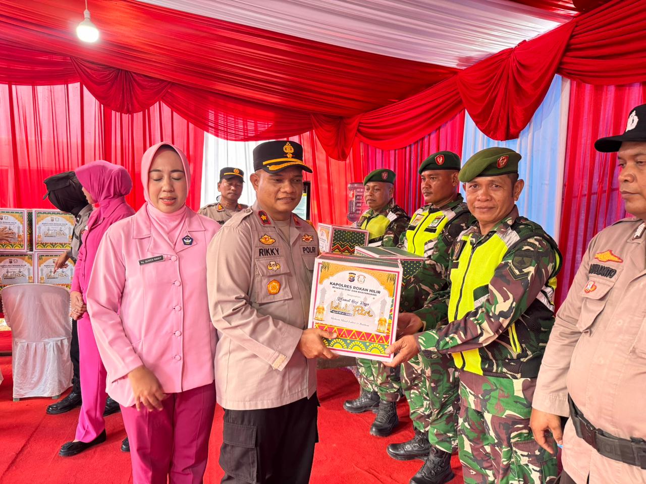 Dalam kesempatan tersebut, Kapolres Rohil bersama Ketua Bhayangkari Cabang Rokan Hilir turut memberikan bingkisan kepada personel yang bertugas sebagai bentuk dukungan moril guna menjaga semangat dan stamina selama pelaksanaan operasi.