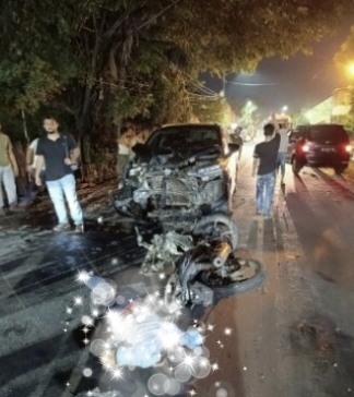 Tabrakan begitu keras yang terjadi Senin dinihari itu, membuat pengendara motor terpental dan mengalami luka, kaki kanan patah, luka lecet pada dada, luka robek sekitar pergelangan kaki kanan, keluar darah dari hidung dan meninggal di lokasi kejadian.
