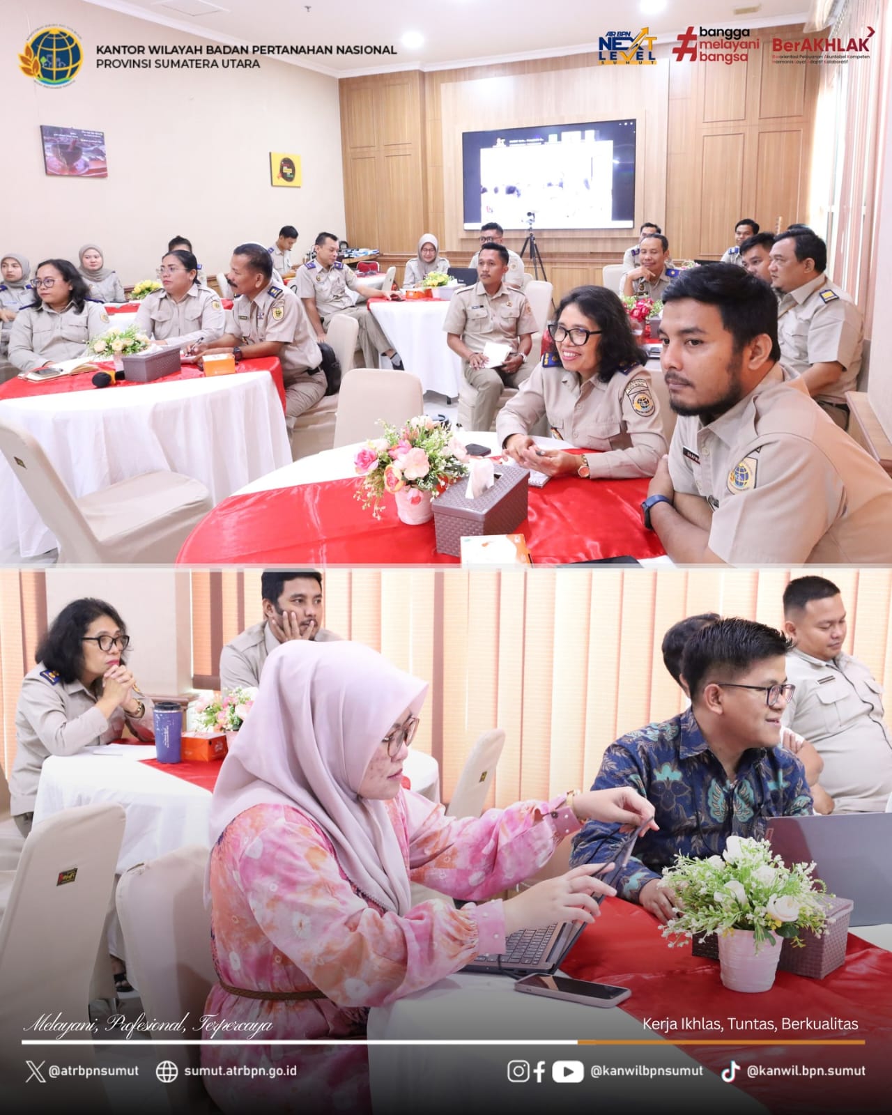 Agraria Kementerian Agraria dan Tata Ruang/Badan Pertanahan Nasional dan Plt. Kepala Bidang Penataan dan Pemberdayaan Bapak Rois Regen Tarigan, S.ST. beserta seluruh Kantor Pertanahan Kabupaten/Kota di Provinsi Sumatera Utara secara daring dan luring yang diwakili oleh Kepala Seksi Penataan dan Pemberdayaan.