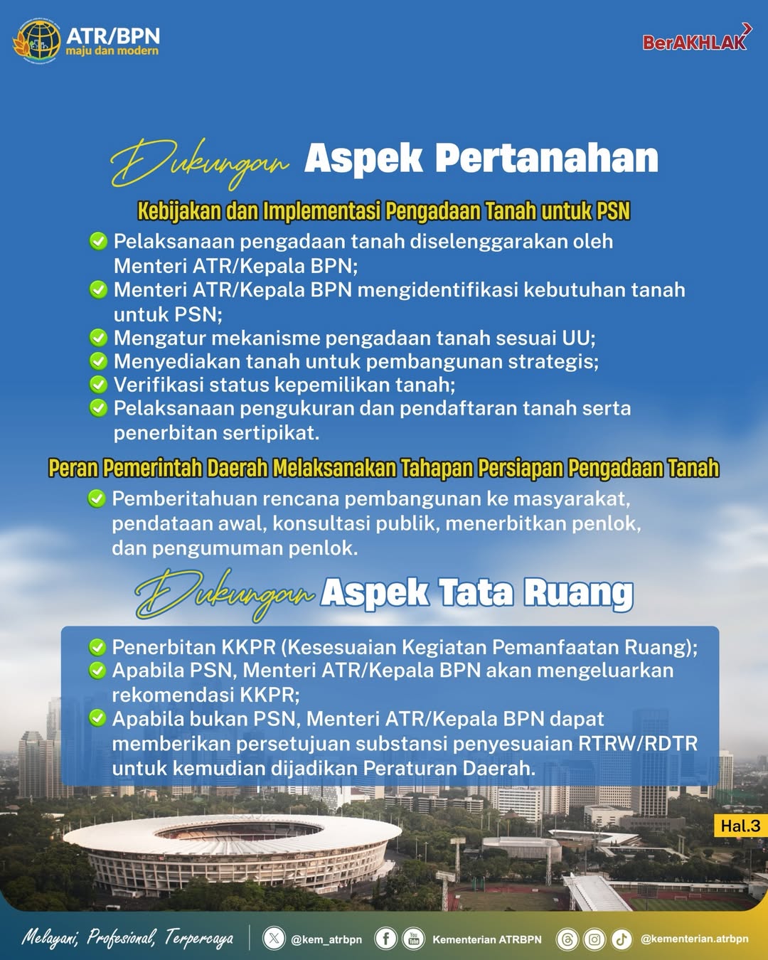 Mulai dari pengadaan tanah hingga penataan ruang, semuanya dipastikan berjalan tertib, legal, dan berpihak pada kepentingan masyarakat demi pembangunan yang merata dan berkelanjutan.
