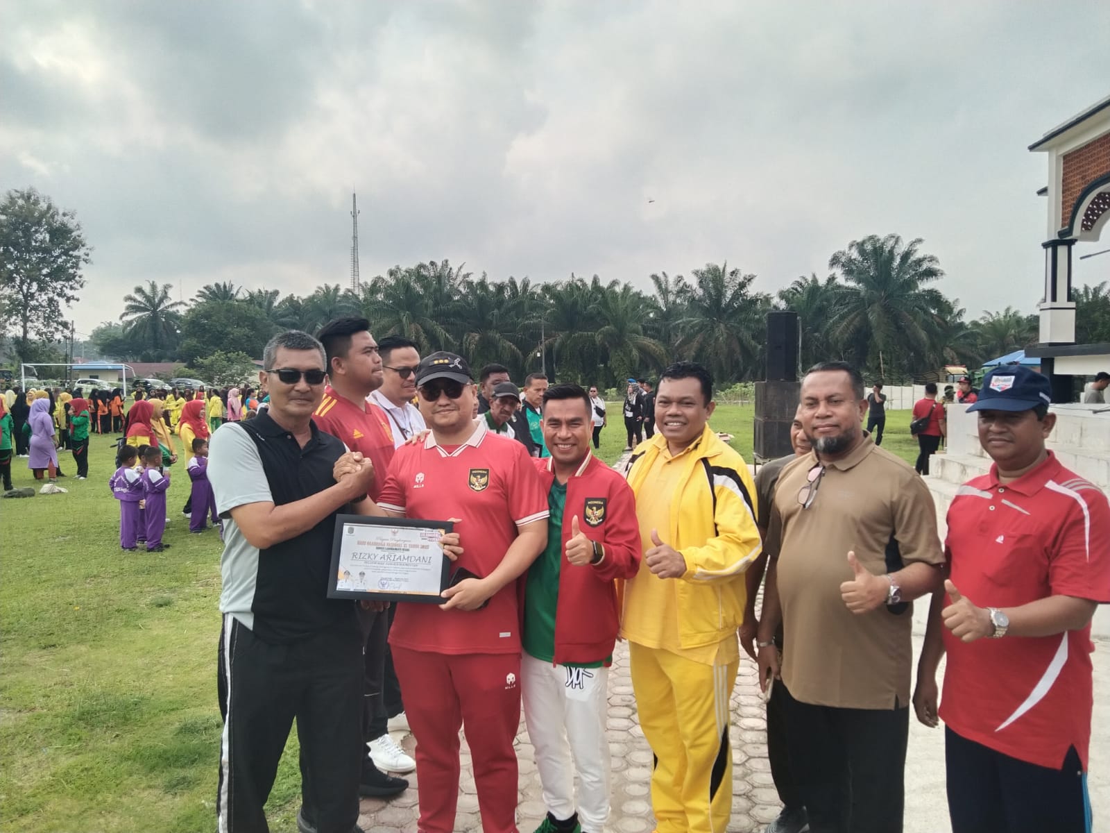 Terlihat acara itu di akhiri dengan pemberian plakat Piagam bagi para pelatih dan Insan Peduli Olahraga kemudian di akhiri dengan Senam bersama.(DaM/RaP)