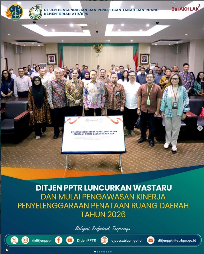 Jakarta | Harian.co.id,- Kick Off Meeting Pengawasan Kinerja Penyelenggaraan Penataan Ruang Daerah Tahun 2026 resmi digelar Direktorat Jenderal Pengendalian dan Penertiban Tanah dan Ruang (PPTR) pada Kamis, (26/2/2026) di Jakarta dan dilaksanakan secara hybrid, melibatkan Pemerintah Provinsi dan Kabupaten/Kota se-Indonesia, serta Kementerian/Lembaga yang membidangi Penataan Ruang.