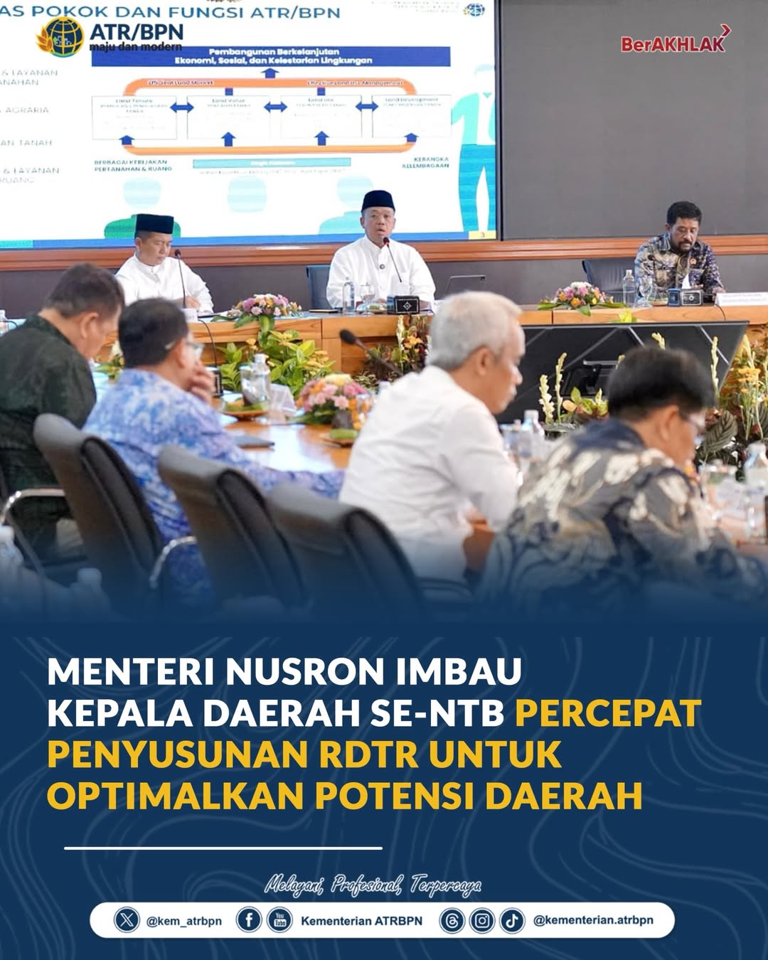Tanpa RDTR, potensi daerah bisa jadi tidak optimal. Saat ini, dari target 77 RDTR di NTB, baru 15 yang selesai. Artinya, masih ada 62 RDTR yang perlu segera dituntaskan. “Daerah yang punya potensi bisa menjadi tidak ada gunanya kalau belum memiliki RDTR,” tegas Menteri Nusron. Selain itu, Pemda juga diminta menjaga lahan pertanian dengan menetapkan KP2B dan LP2B sesuai ketentuan, guna mencegah alih fungsi lahan yang tidak terkendali.