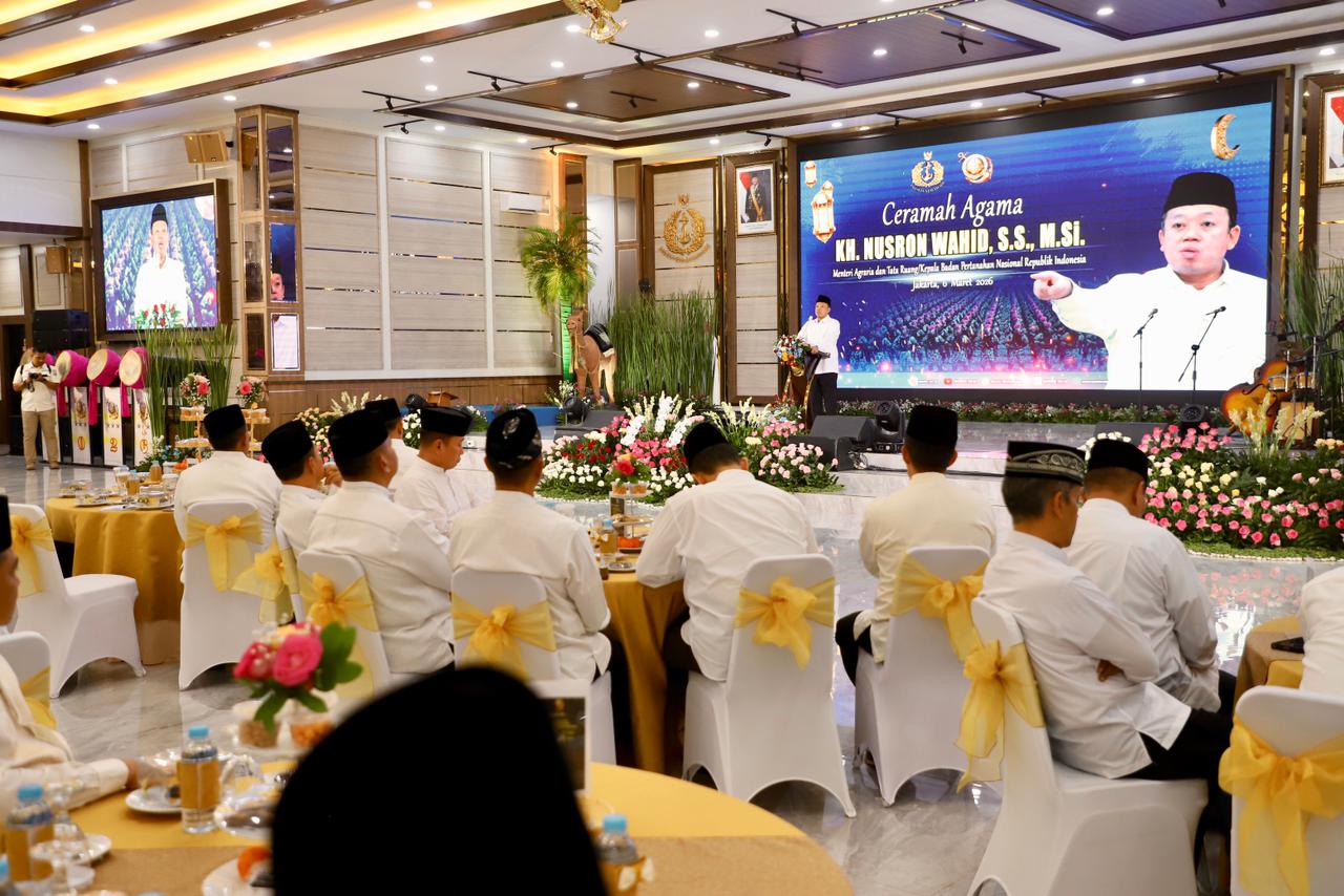 Jakarta | Harian.co.id,-Menteri Agraria dan Tata Ruang/Kepala Badan Pertanahan Nasional (ATR/BPN), Nusron Wahid, menyampaikan ceramah agama pada acara Peringatan Nuzulul Quran dan Buka Puasa Bersama Prajurit Korps Marinir Tentara Nasional Indonesia Angkatan Laut (TNI AL) Tahun 2026, di Gedung Aminullah Ibrahim Kesatrian Marinir Hartono Cilandak, Jakarta, Jumat (06/03/2026). Dalam momentum peringatan turunnya wahyu pertama berupa Al-Qur’an kepada Nabi Muhammad SAW melalui Malaikat Jibril di Gua Hiro ini, Menteri Nusron mengingatkan bahwa turunnya Al-Qur’an adalah rahmat dan nikmat yang paling agung bagi umat muslim.