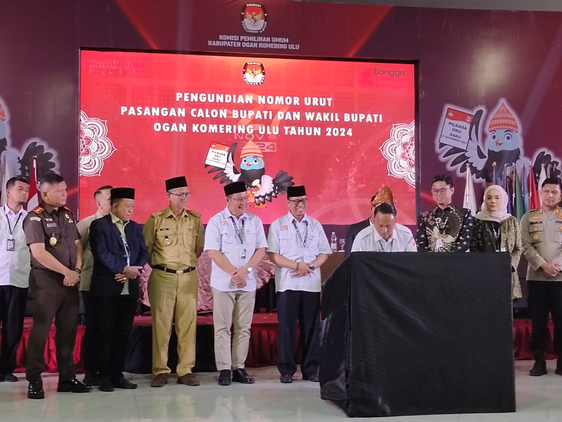 Baturaja, – Pasangan calon Bupati OKU H Teddy Meilwansyah dan Calon Wakil Bupati OKU H Marjito Bachri mendapat nomor urut 2 http://nomor urut 2(dua) dalam pengundian bonor urut Paslon Bupati dan Wakil Buapti OKU yabg digelar KPU OKU di Ballroom BIL Hotel Baturaja pada Senin (23/9/2024).
