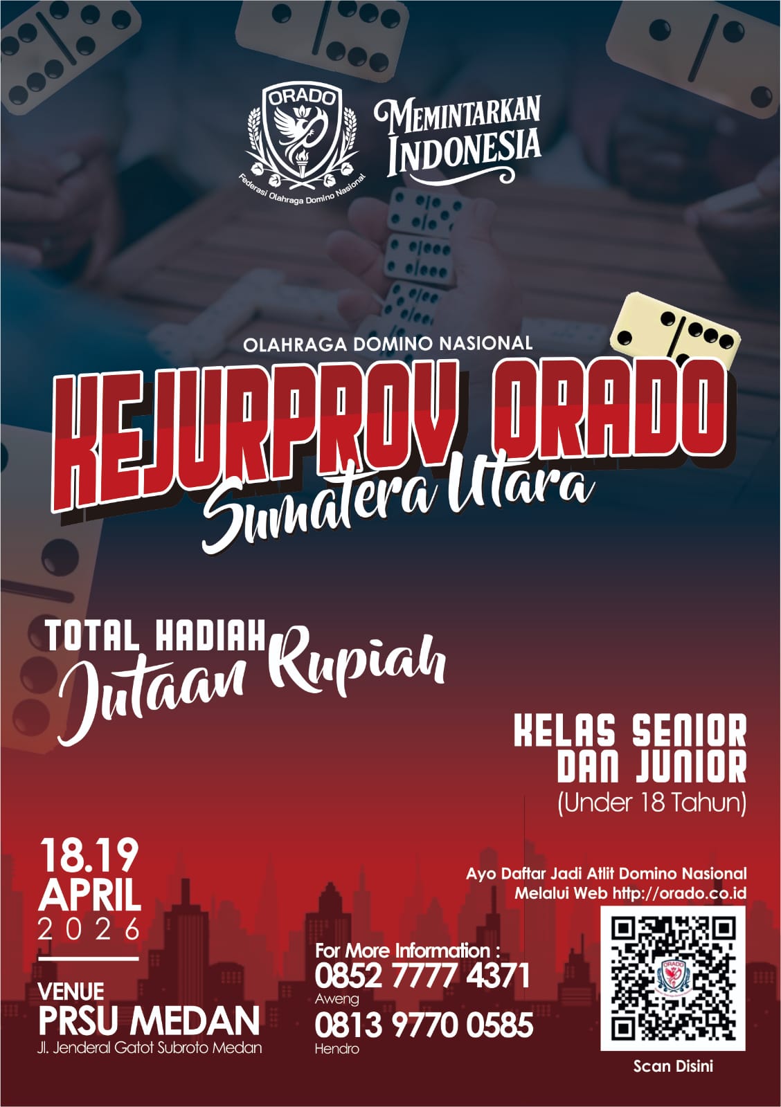 Ia juga menambahkan bahwa kejuaraan domino tingkat Provinsi Sumatera Utara yang akan digelar pada Minggu 19 April 2026, sekitar pukul 08.00 WIB, di kawasan PRSU, Jalan Gatot Subroto, Medan, menjadi bagian penting dalam proses pembinaan atlet.