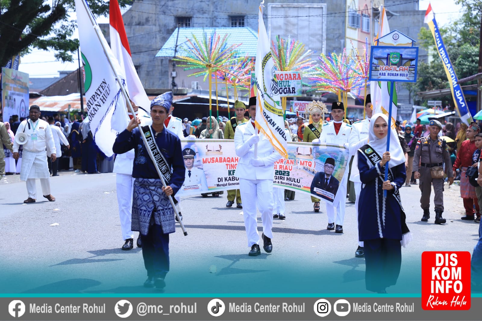 Sementara rombongan pawai ta’ruf dari Rokan Hulu dihadiri Seluruh Pejabat Eselon II, Eselon III Dinas, Para Camat se Rokan Hulu, Kades se Rokan hulu beserta para ASN di lingkungan Pemerintahan Kabupaten Rokan Hulu.