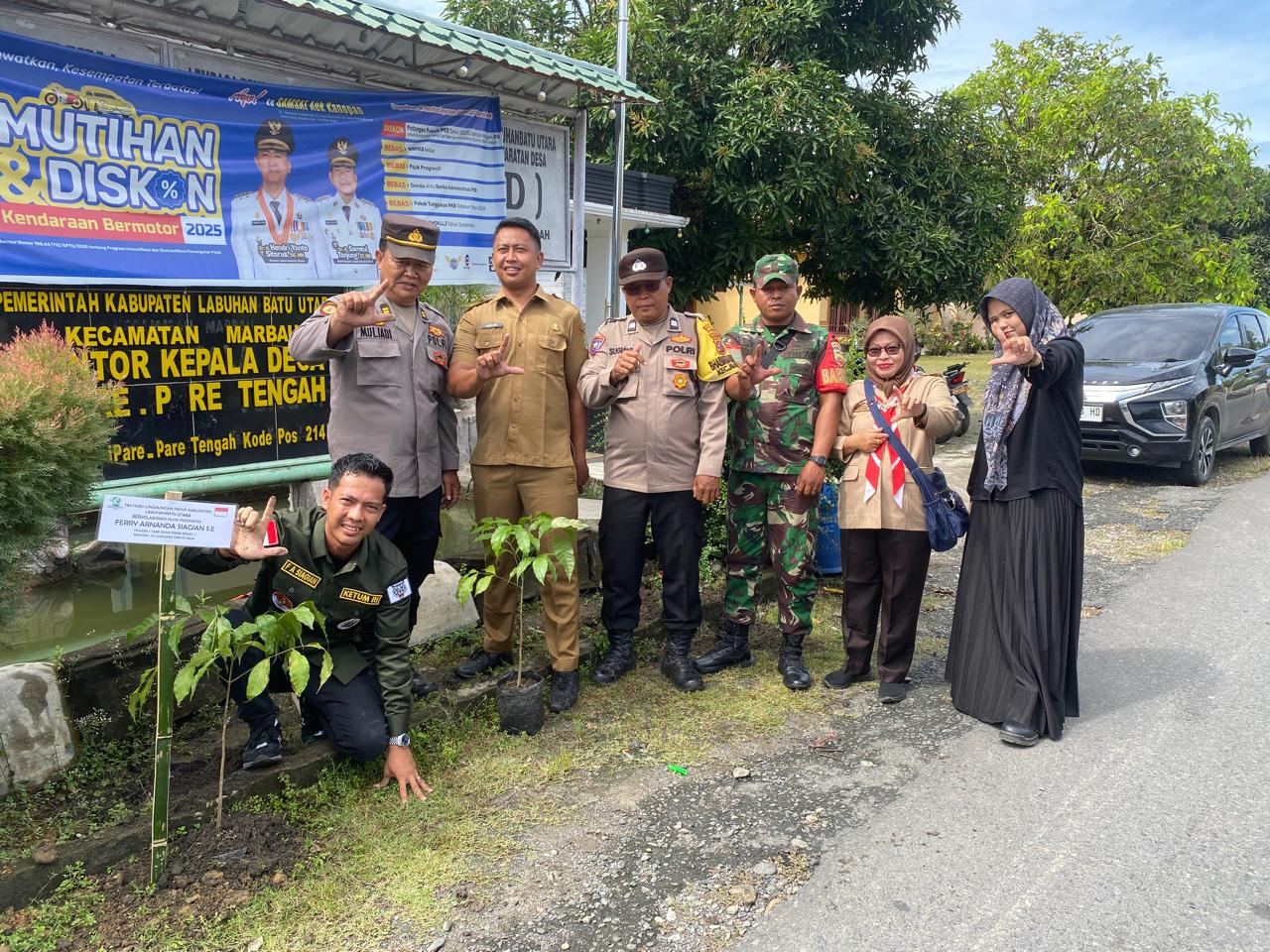 Tim Hijau Lingkungan Hidup Kabupaten Labuhanbatu Utara berkolaborasi Hijau Lingkungan Hidup dan Kehutanan Indonesia Tanam 1.000 Bibit Pohon Tabebuya Asal Brazil.(foto/Ist)