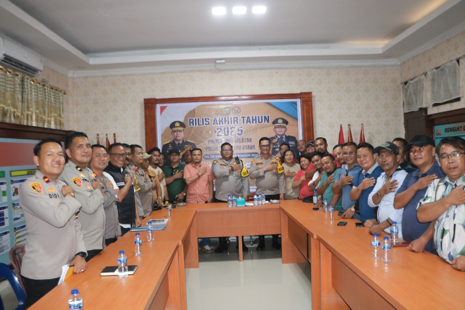 Nias Selatan — ( Harian.co.id ) Polres Nias Selatan Polda Sumatera Utara menggelar kegiatan Rilis Akhir Tahun 2025 dengan mengusung tema “Aktualisasi Transformasi Polri untuk Masyarakat”. Kegiatan tersebut berlangsung di Aula 99 Endra Dharmalaksana Polres Nias Selatan, Rabu (31/12/2025).