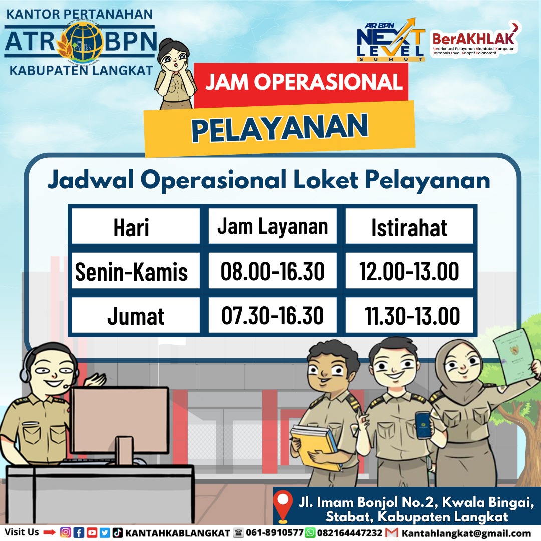 Kantor Pertanahan Kabupaten Langkat berkomitmen untuk terus meningkatkan kualitas pelayanan publik dengan mengedepankan prinsip profesional, transparan, dan terpercaya. Masyarakat juga diharapkan dapat mematuhi ketentuan dan jadwal layanan yang telah ditetapkan demi kelancaran bersama.