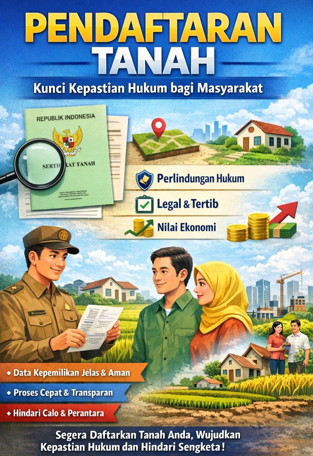 Langkat | Harian.co.id,- Dalam upaya memberikan kepastian hukum atas kepemilikan tanah, masyarakat diimbau untuk segera melakukan pendaftaran tanah melalui kantor pertanahan setempat. Pendaftaran tanah merupakan langkah penting dalam melindungi aset masyarakat dari potensi sengketa maupun permasalahan hukum di kemudian hari.