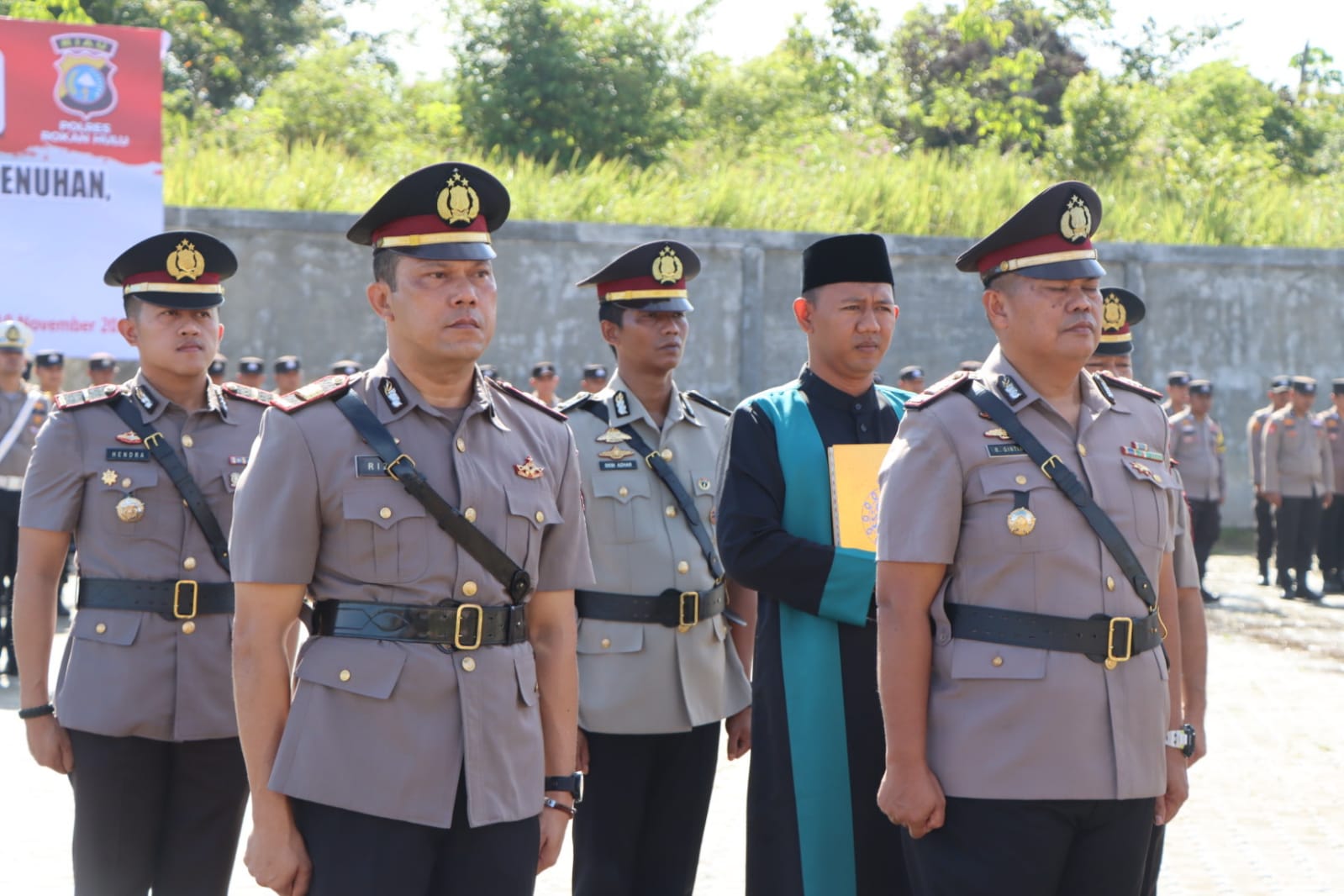 Kapolres Rohul AKBP Budi Setiyono SIK MH Sebagai Inspektur Upacara, Perwira Upacara AKP Jon Heri SH, Komandan Upacara Ipda Joni Saputra S Psi,