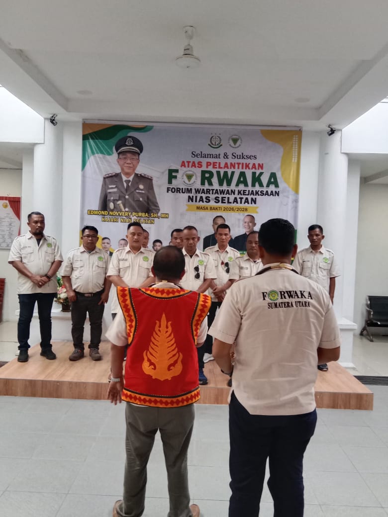 Nias Selatan,harian.co.id — Forum Wartawan Kejaksaan (Forwaka) Nias Selatan resmi dilantik dalam sebuah seremoni khidmat yang digelar di Kantor Kejaksaan Negeri Nias Selatan, Selasa (28/04/2026). Pelantikan ini menjadi tonggak awal penguatan kolaborasi antara insan pers dan institusi kejaksaan dalam mendorong transparansi serta penyampaian informasi publik yang akurat dan bertanggung jawab.