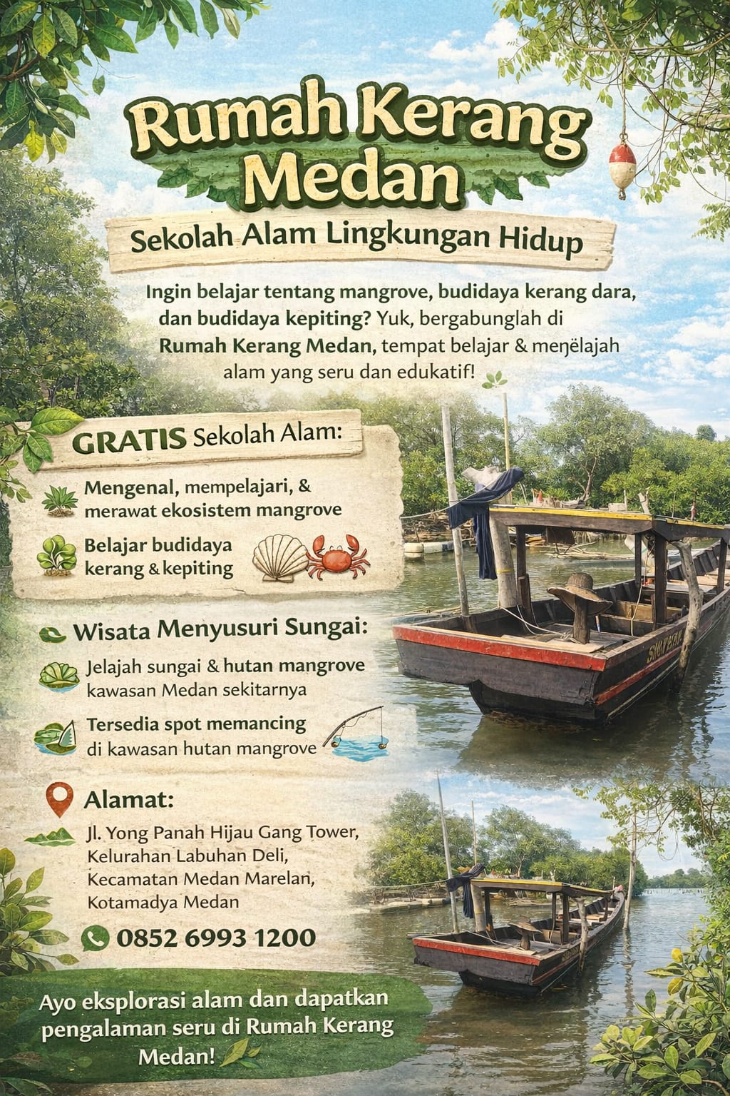“Di sini masyarakat bisa belajar langsung tentang budidaya kerang, budidaya kepiting, serta penanaman mangrove sebagai bagian dari upaya menjaga ekosistem pesisir,” ujar Wibi.