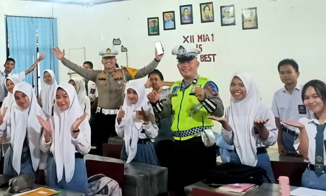 “Jumlah laka lantas yang banyak terjadi yaitu dikalangan anak-anak pelajar. Karena itu, bagi yang menggunakan sepeda motor sendiri ke sekolah, harus menggunakan helm standar (SNI) dan mematuhi aturan berlalu lintas” ajak Yaqin.