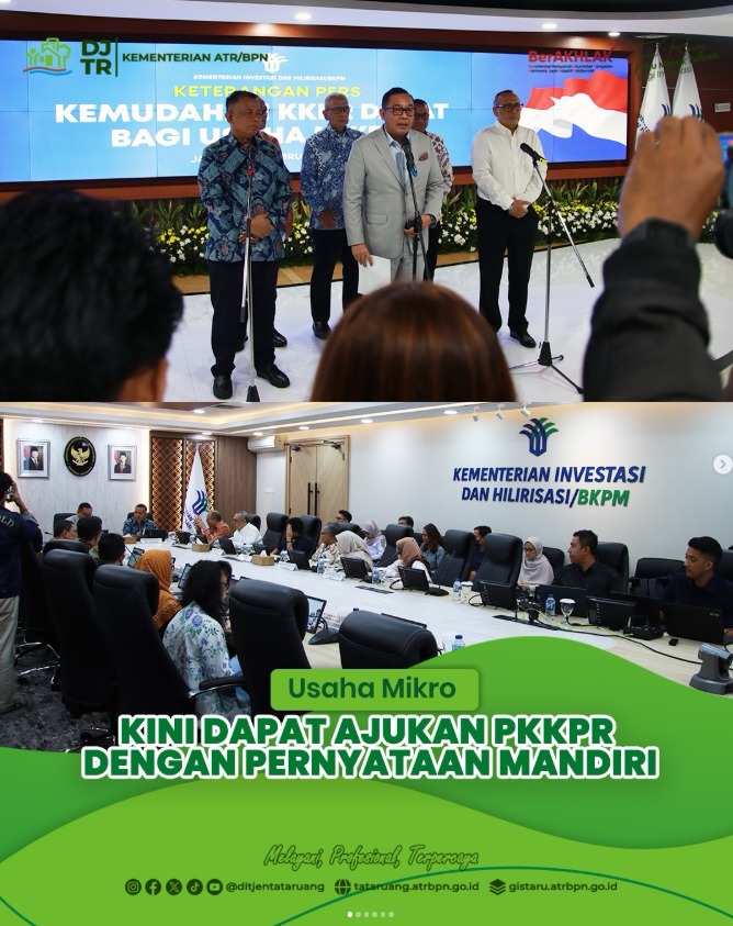 Jakarta | Harian.co.id,– Seluruh pelaku usaha mikro kini dapat kembali mengajukan Kesesuaian Kegiatan Pemanfaatan Ruang (KKPR) melalui mekanisme pernyataan mandiri melalui sistem Online Single Submission (OSS) seperti sebelumnya.