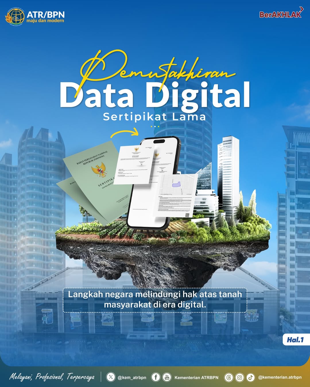 Yuk, segera lakukan pemutakhiran data digital sertipikat tanah lamamu dan jangan tunda lagi, karena data yang mutakhir adalah kunci kepastian hukum hak atas tanah (Rel/SB)