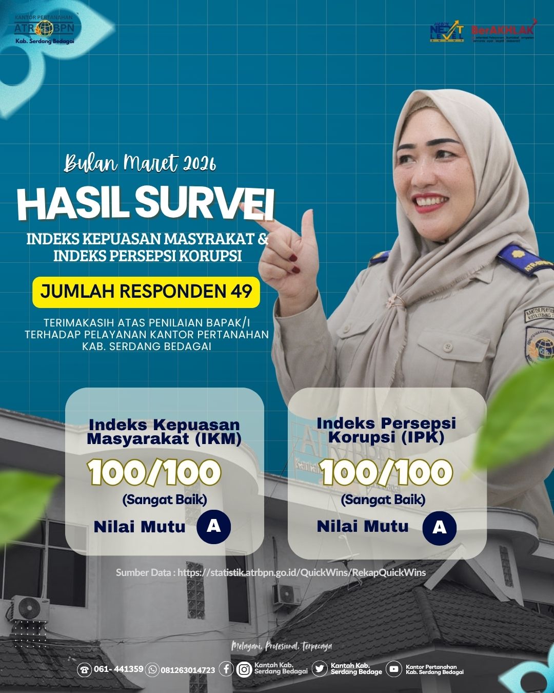 Serdang Bedagai | Harian.co.id,- Bagaimana survey kepuasan masyarakat akan pelayanan Kantor Pertanahan Kabupaten Serdang Bedagai pada Bulan Maret?